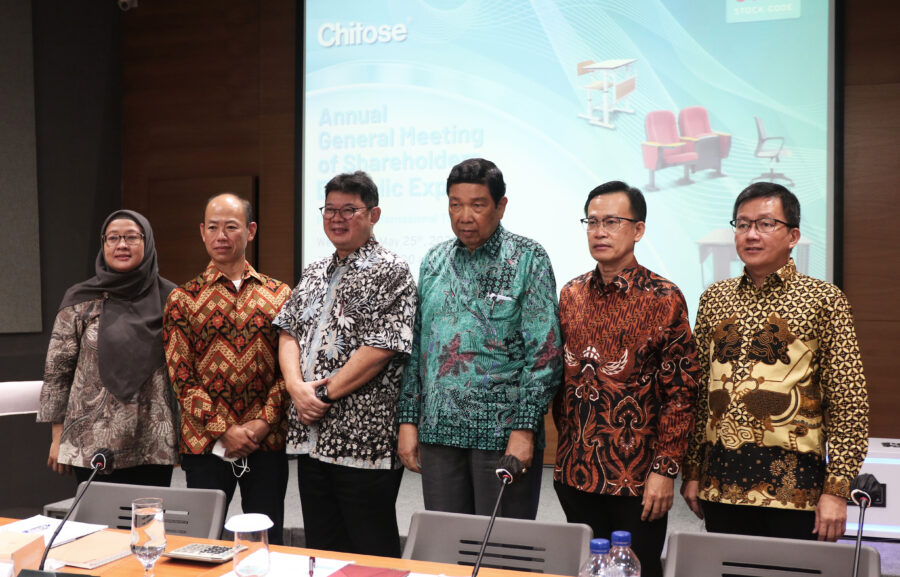 Left to right: CINT Director R. Nurwulan Kusumawati, President Director of CINT Kazuhito Aminaka, President Commissioner of PT Chitose Internasional Tbk Dedie Suherlan, Independent Commissioner of PT Chitose Internasional Tbk Marusaha Siregar, Commissioner of PT Chitose Internasional Tbk Widjaya Djohan, Director of PT Chitose Internasional Tbk (CINT) Susanto.